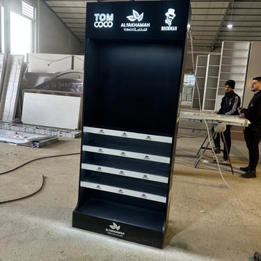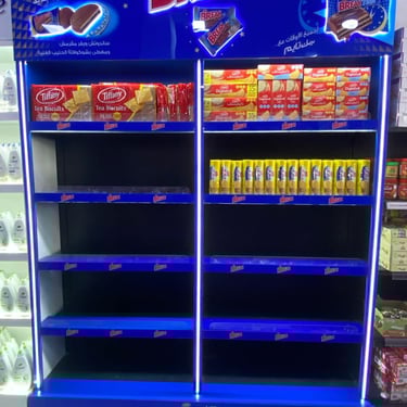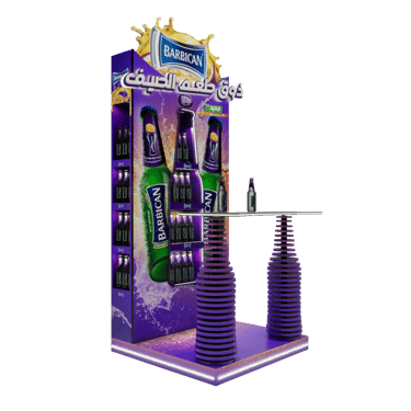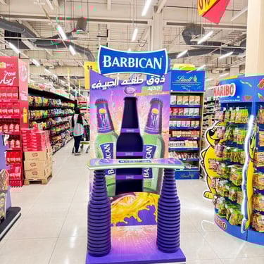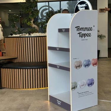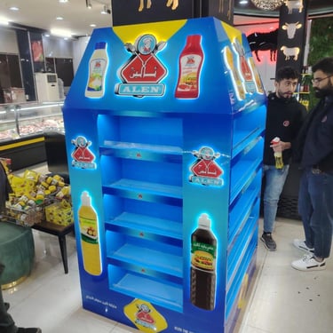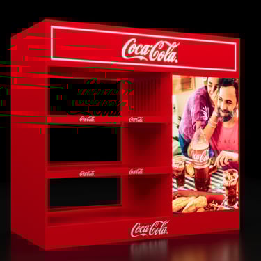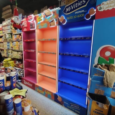 Retail activations, shelves, and promotional setups built for visibility.