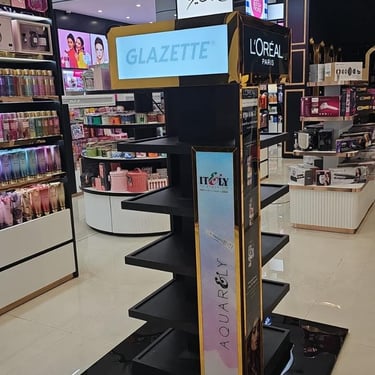 Custom displays, kiosks, and branded environments for beauty brands.